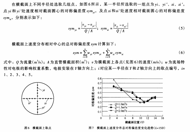 根據(jù)計(jì)算結(jié)果分析,盡管直管上并沒有速度完全中心軸對稱(速度總對稱偏差度為0)的用于安裝電磁流量計(jì)的理想位置,但是由于sym*小值較小,且延長直管長度后sym*小值變化很小,因此可以認(rèn)為,在設(shè)計(jì)800mm內(nèi)徑電磁流量計(jì)測量管路時,直管長度取12m可滿足電磁流量計(jì)的安裝和測量要求,但考慮到電磁流量計(jì)本身的長度,直管長度應(yīng)在12m的基礎(chǔ)上適當(dāng)加長。