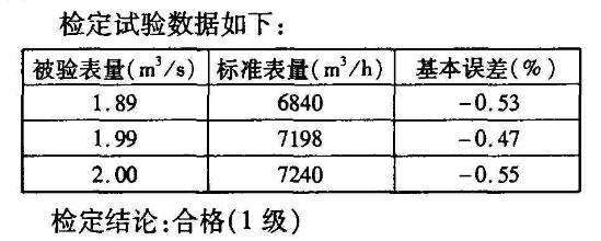 2.實(shí)施現(xiàn)以其中1臺(tái)開封儀表廠生產(chǎn)的口徑1600mm的0.5級(jí)電磁流量計(jì)為例,分析超聲波流量計(jì)的檢定方法及其優(yōu)缺點(diǎn)。此臺(tái)1600mm口徑的流量計(jì)安裝于江心洲污水處理廠的進(jìn)水管線上,由于行業(yè)特點(diǎn),無(wú)法做到斷流停役,即使斷流停役,由于安裝于室內(nèi),空間狹小,電磁流量計(jì)無(wú)法拆卸搬移,因此不能采用傳統(tǒng)的送回校驗(yàn)的方法,只能采用在線檢測(cè)的方法進(jìn)行檢定。二零零四年元月,南京市質(zhì)量技術(shù)監(jiān)督局流量鋼卷尺計(jì)量檢定站到現(xiàn)場(chǎng)進(jìn)行在線檢測(cè)標(biāo)準(zhǔn)表為精度為0.5級(jí)的多普勒法超聲波流量計(jì)。
