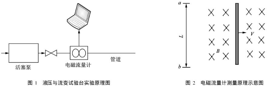 本文選用不同質(zhì)量濃度的煤泥在裝有電磁流量計的液壓與流變試驗臺上(實驗原理如圖1)進(jìn)行管道輸送實驗.電磁流量計根據(jù)電磁感應(yīng)原理測量流過管道中導(dǎo)電流體旳流量.故使用電磁流量計的前提是被測流體必須導(dǎo)電。且電導(dǎo)率不能低于閾值(即下限值).通用型電磁流量計的閾值在(5×106)S/cmI04S/cm之間、若電導(dǎo)率低于閾值會產(chǎn)生誤差甚至不能測量.根據(jù)電磁感應(yīng)原理(如圖2),當(dāng)導(dǎo)電流體在磁場強(qiáng)度為B的磁場中切割磁力線時,在線形長度為L的a和b兩點之間會產(chǎn)生感應(yīng)電動勢.為