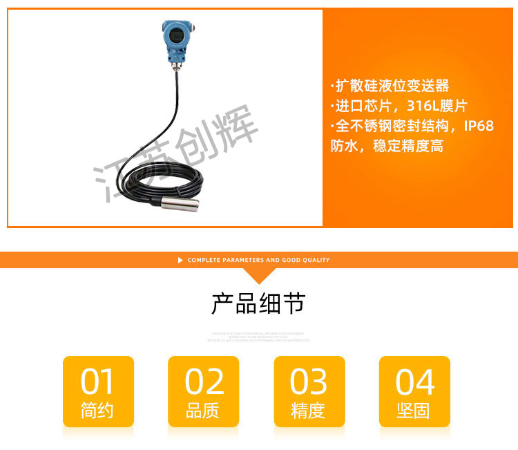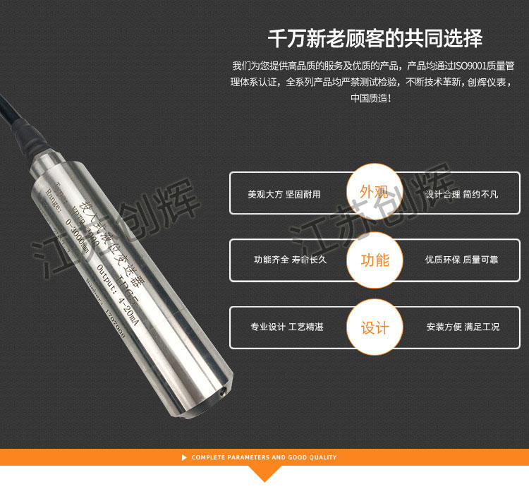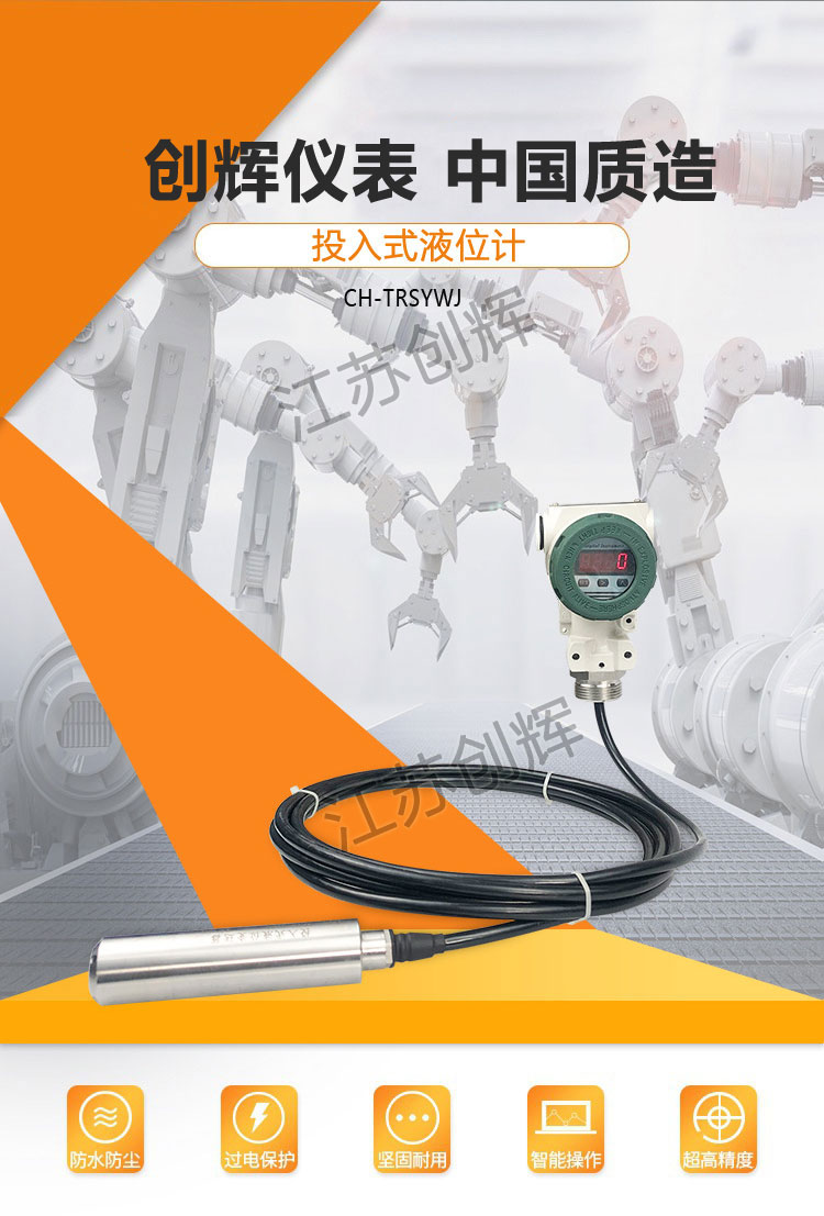 CH-TRS投入式液位變送器是基于所測(cè)液體靜壓與該液體高度成正比的原理,采用擴(kuò)散硅或陶瓷敏感元件的壓阻效應(yīng),將靜壓轉(zhuǎn)成電信號(hào)。經(jīng)過溫度補(bǔ)償和線性校正,轉(zhuǎn)換成4-20mADC標(biāo)準(zhǔn)電流信號(hào)輸出。 投入式液位變送器的傳感器部分可直接投入到液體中,變送器部分可用法蘭或支架固定,安裝使用極為方便。買投入式液位變送器***江蘇創(chuàng)輝,**從事投入式液位變送器儀表的開發(fā)和應(yīng)用.產(chǎn)品安全可靠,耐高溫高壓,技術(shù)**. 歡迎來電咨詢投入式液位變送器價(jià)格!
