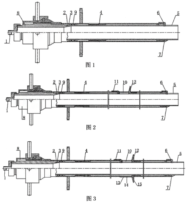 圖中,1-接管咀,2-測量管,3-保護管,4-滑動定位組件,5-末端感壓口,6-**鏟刀,7-第二鏟刀,8-往復直線運動機構(gòu),9-滑動密封裝置,10-中間感壓口,11-第三鏟刀,12-第四鏟刀,13-輔助開口,14-靜壓外管蓋板,15-第五鏟刀。