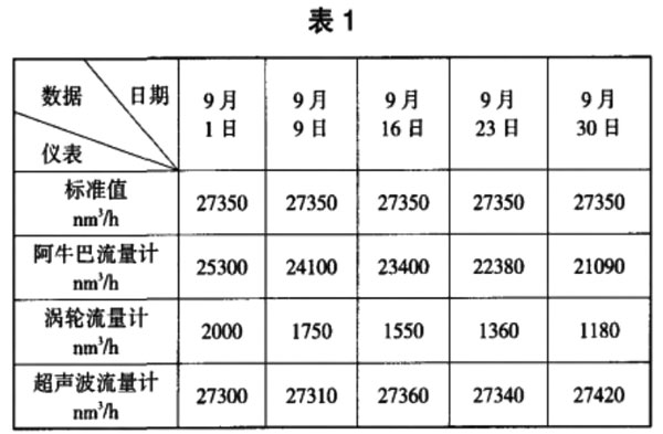 由表1和表2,在煤氣計(jì)量中,超聲波流量計(jì)運(yùn)用很成功,解決了該廠多年來(lái)煤氣計(jì)量不準(zhǔn)的難題